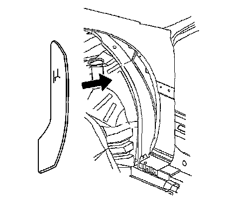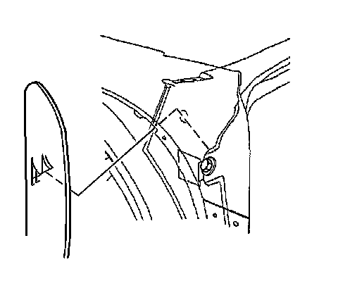 Important: The front fender insulator must be kept near the flange of the front fender wheel opening to avoid interference with the front door edge.