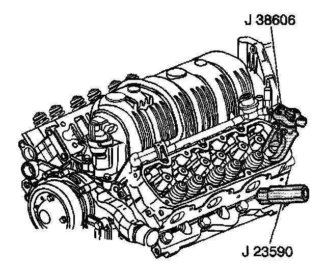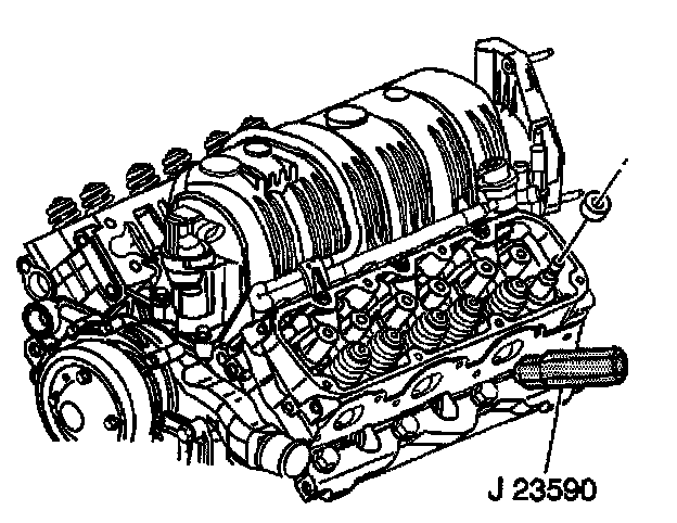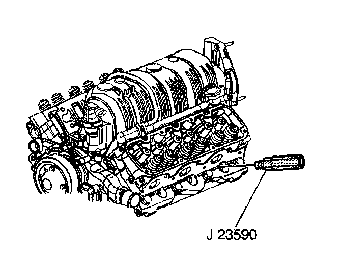 4. Install the J 23590 to the spark plug port and apply compressed air in order to hold the valves closed.