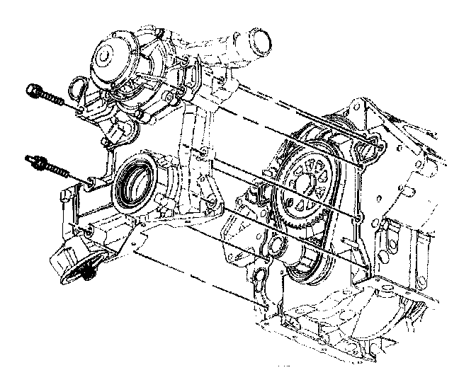 Important: The oil pan can be dropped slightly for engine front cover clearance if all pan bolts are loosened and the oil level sensor is removed.