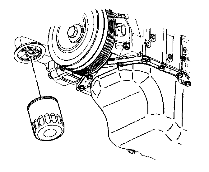6. If replacing the engine front cover, install the pressure relief valve, the oil filter adapter and the oil filter adapter bolts to the engine front cover.