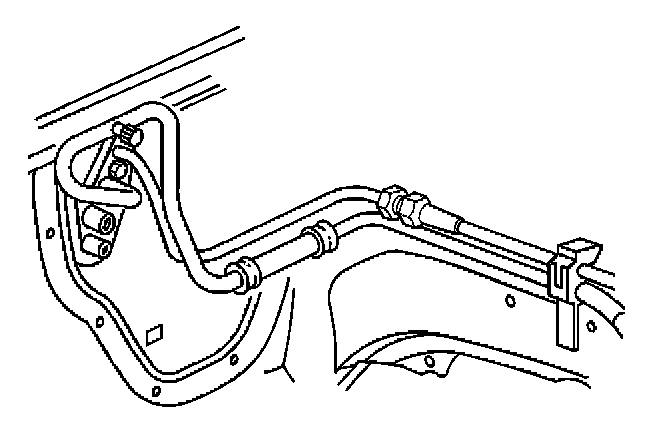 The expansion (orifice) tube is located behind the Power Vacuum Brake Booster, in the liquid line between the condenser outlet and evaporator inlet.