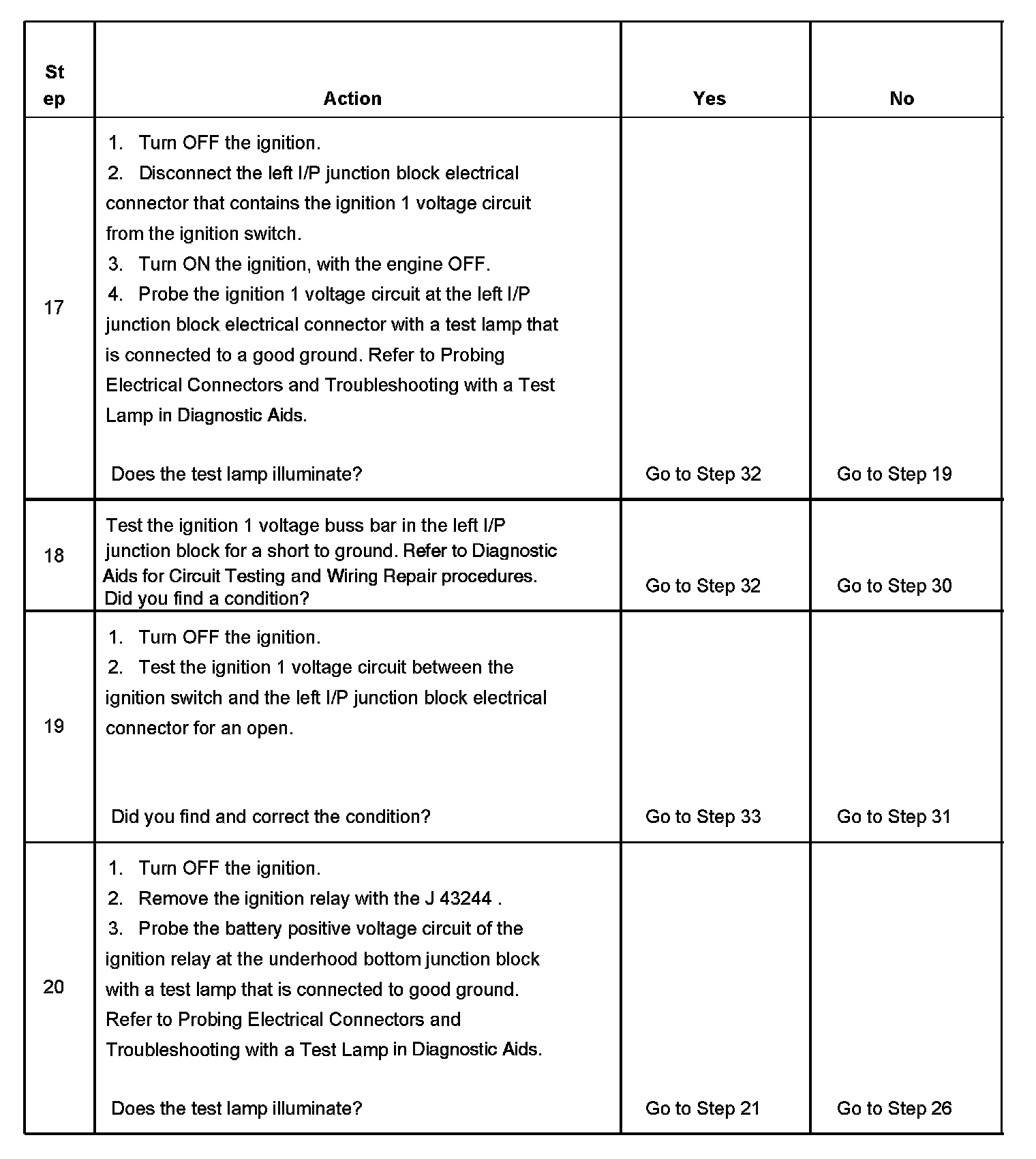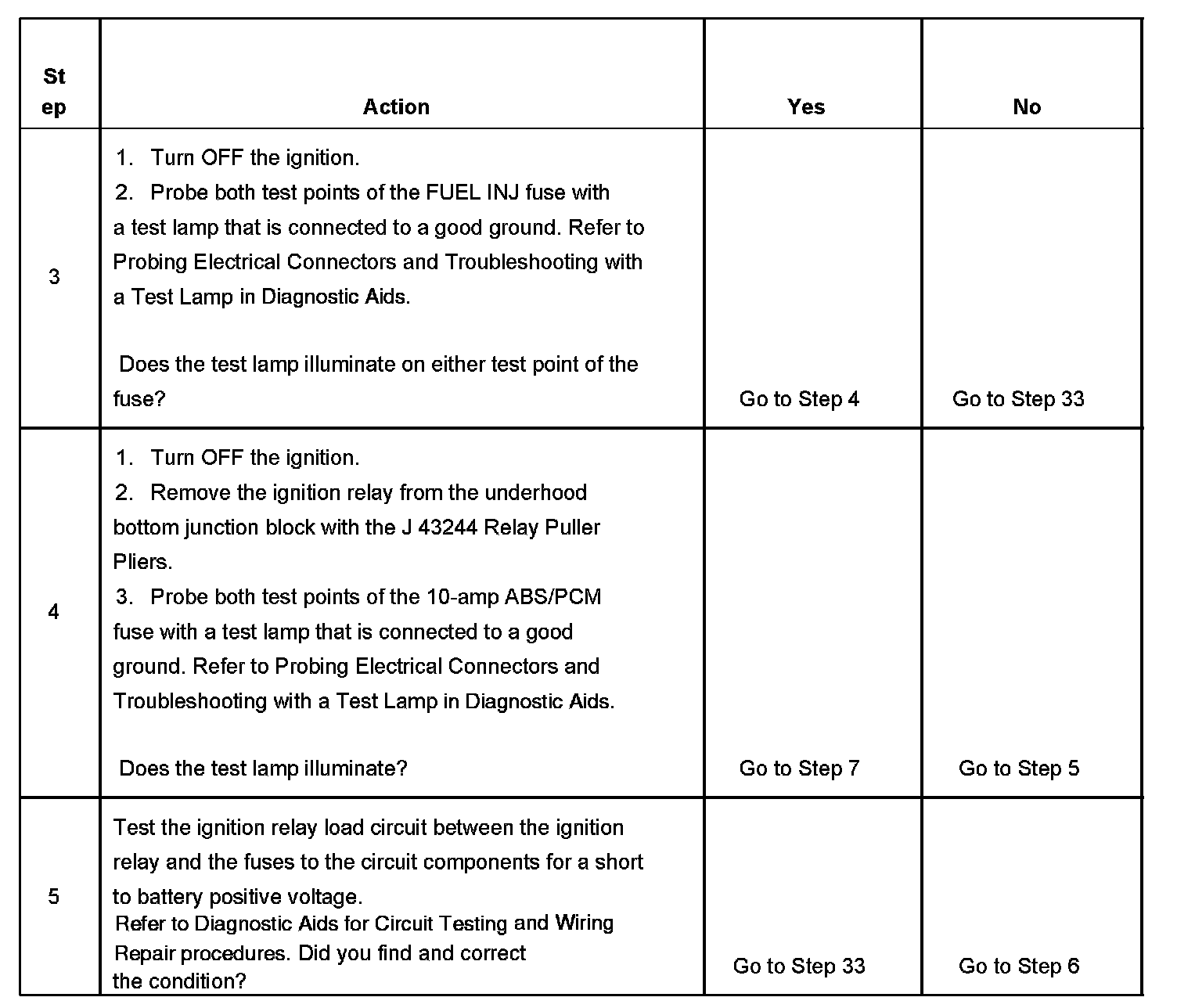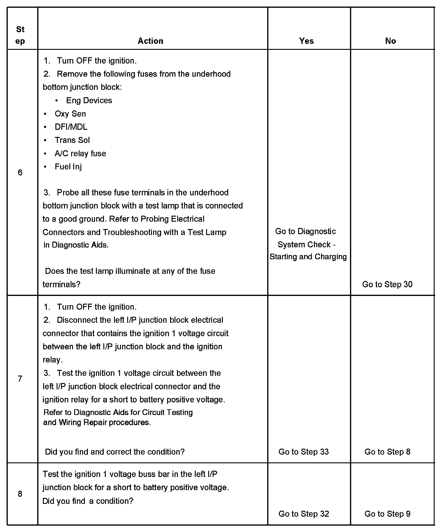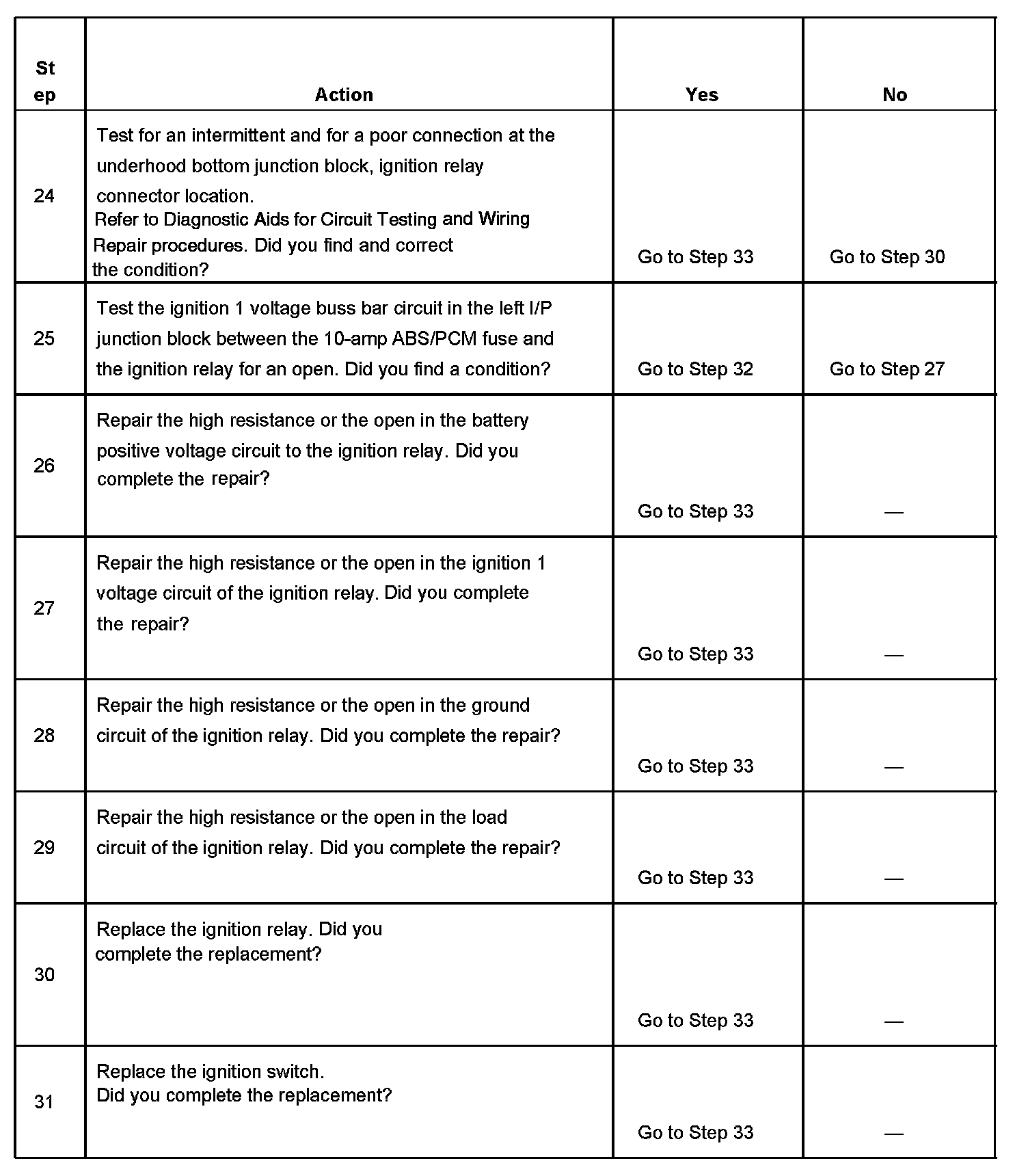 The ignition relay table assumes that the vehicle battery is fully charged. Refer to Battery Inspection/Test in Starting and Charging. Battery Inspection/Test