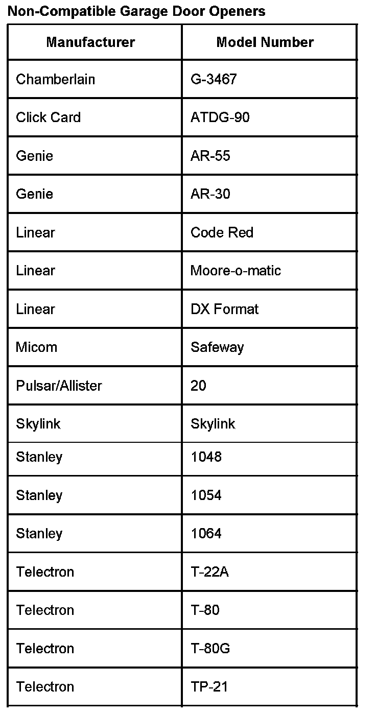 NON-COMPATIBLE GARAGE DOOR OPENERS