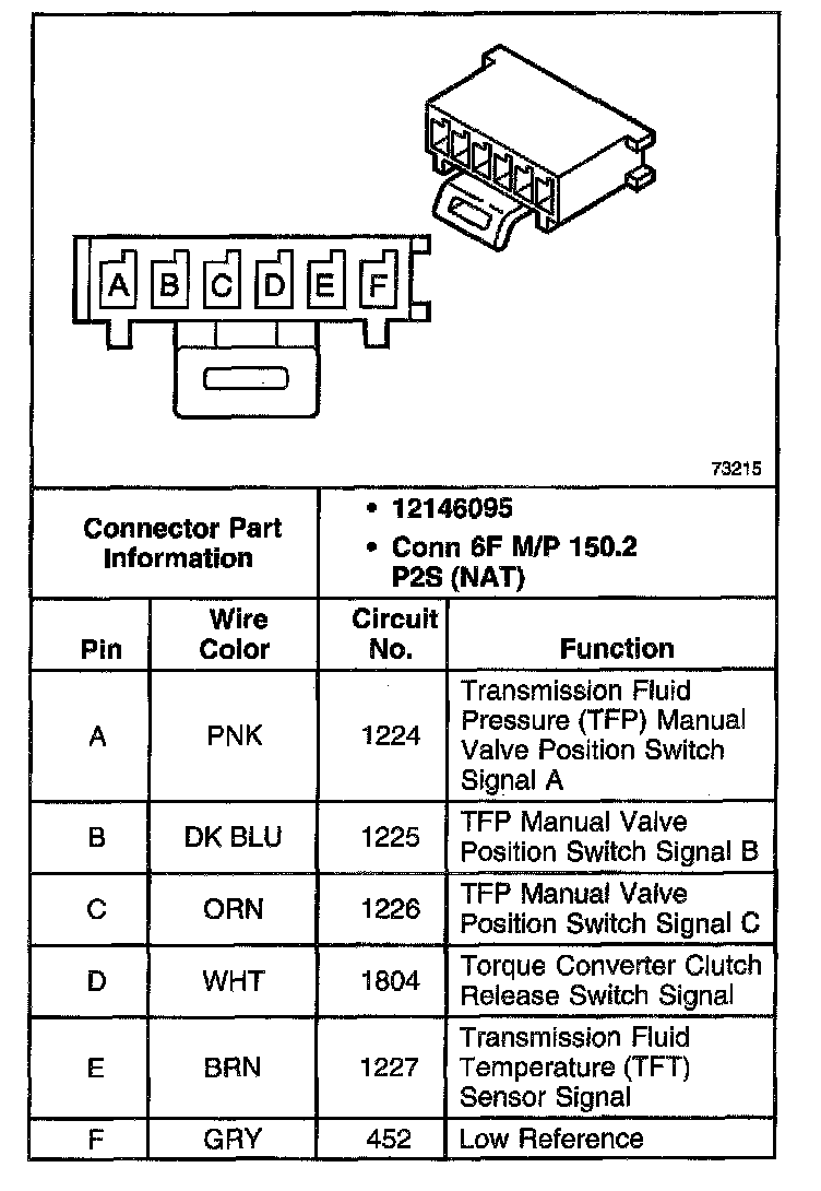 Transmission Fluid Pressure (TFP) Manual Valve Position Switch: