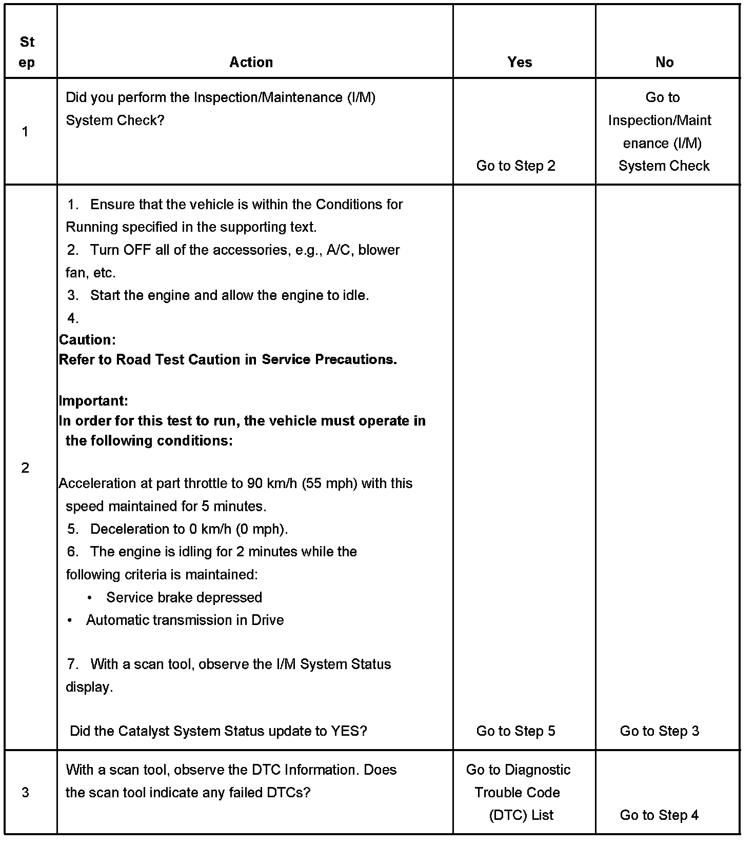 3. This step identifies a first failure of a type B DTC. A DTC only appears on the I/M System Status display when DTC becomes a MIL illuminating DTC. This occurs on the second failure of a type B DTC. A first failure of a type B DTC will not allow the I/M System Status to update to YES. Refer to Diagnostic Aids.