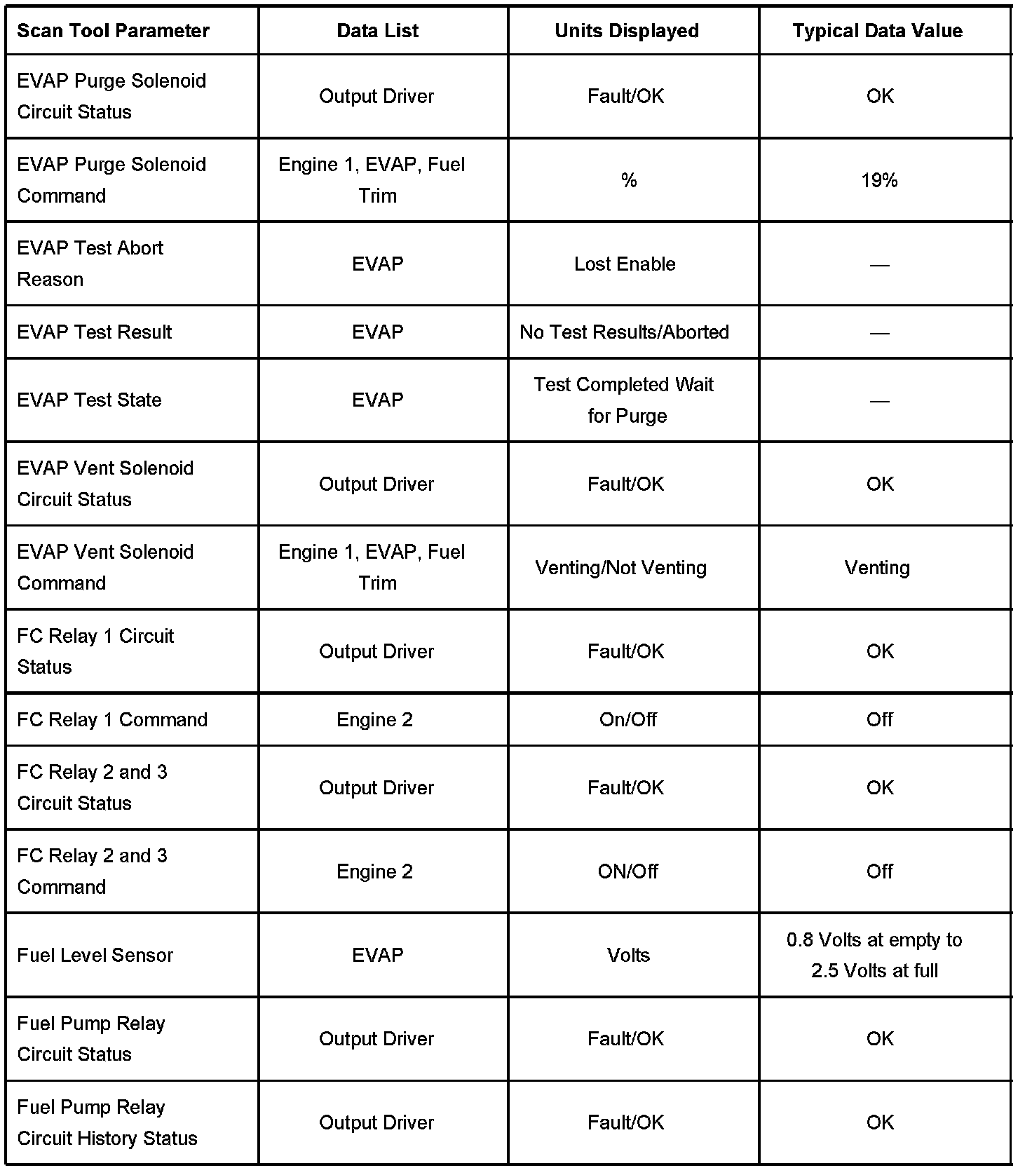 - EVAP Data-Contains information specific to the evaporative emissions (EVAP) control system. Also displays parameters required to verify proper EVAP system operation.