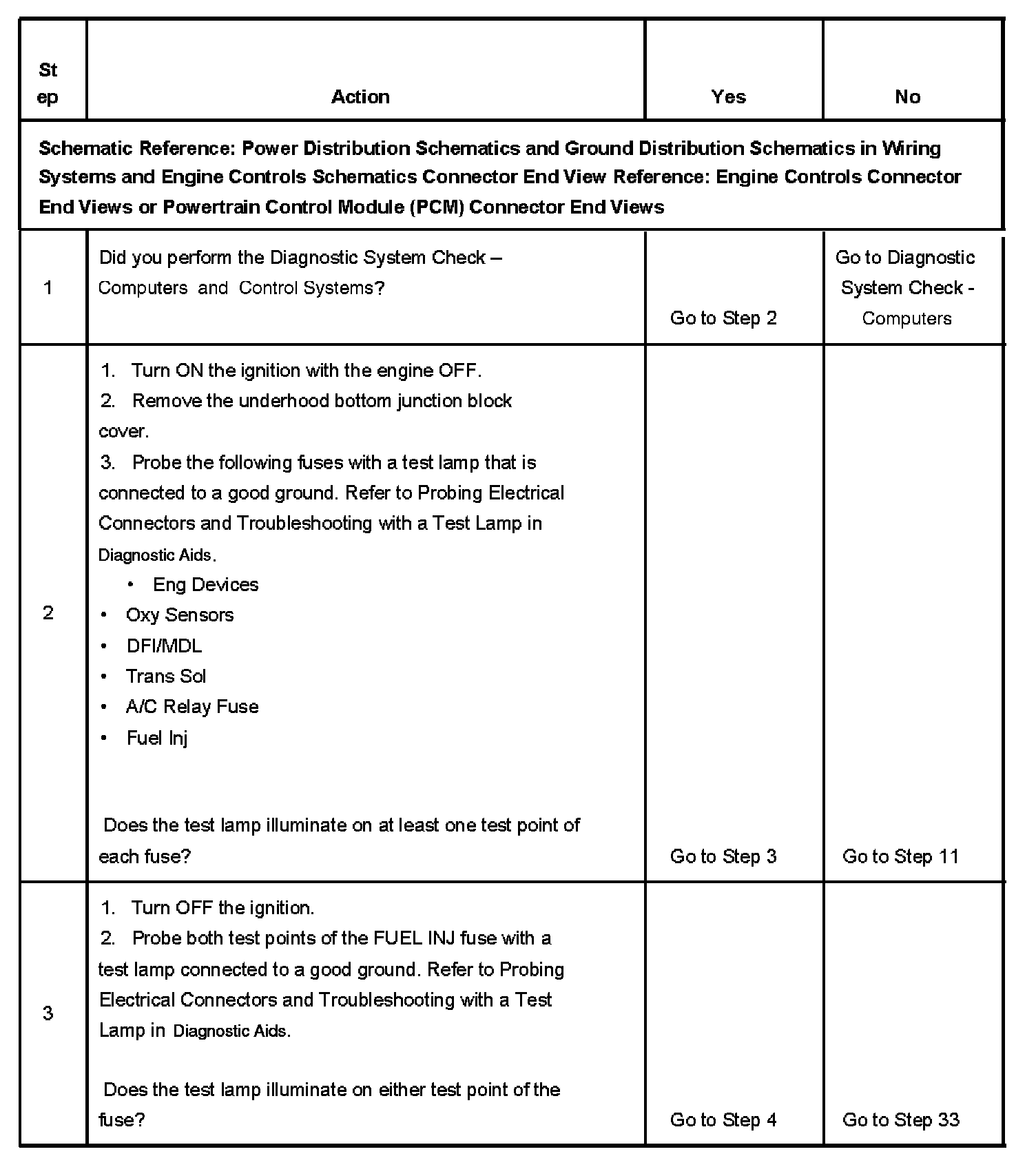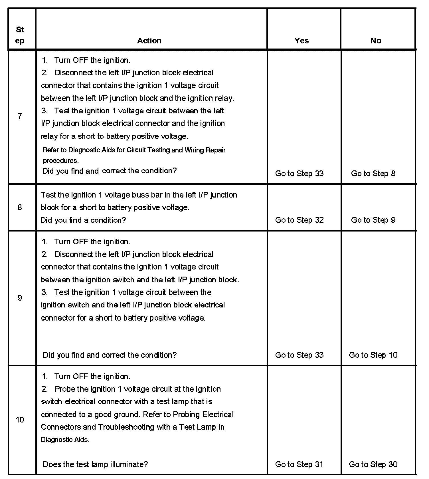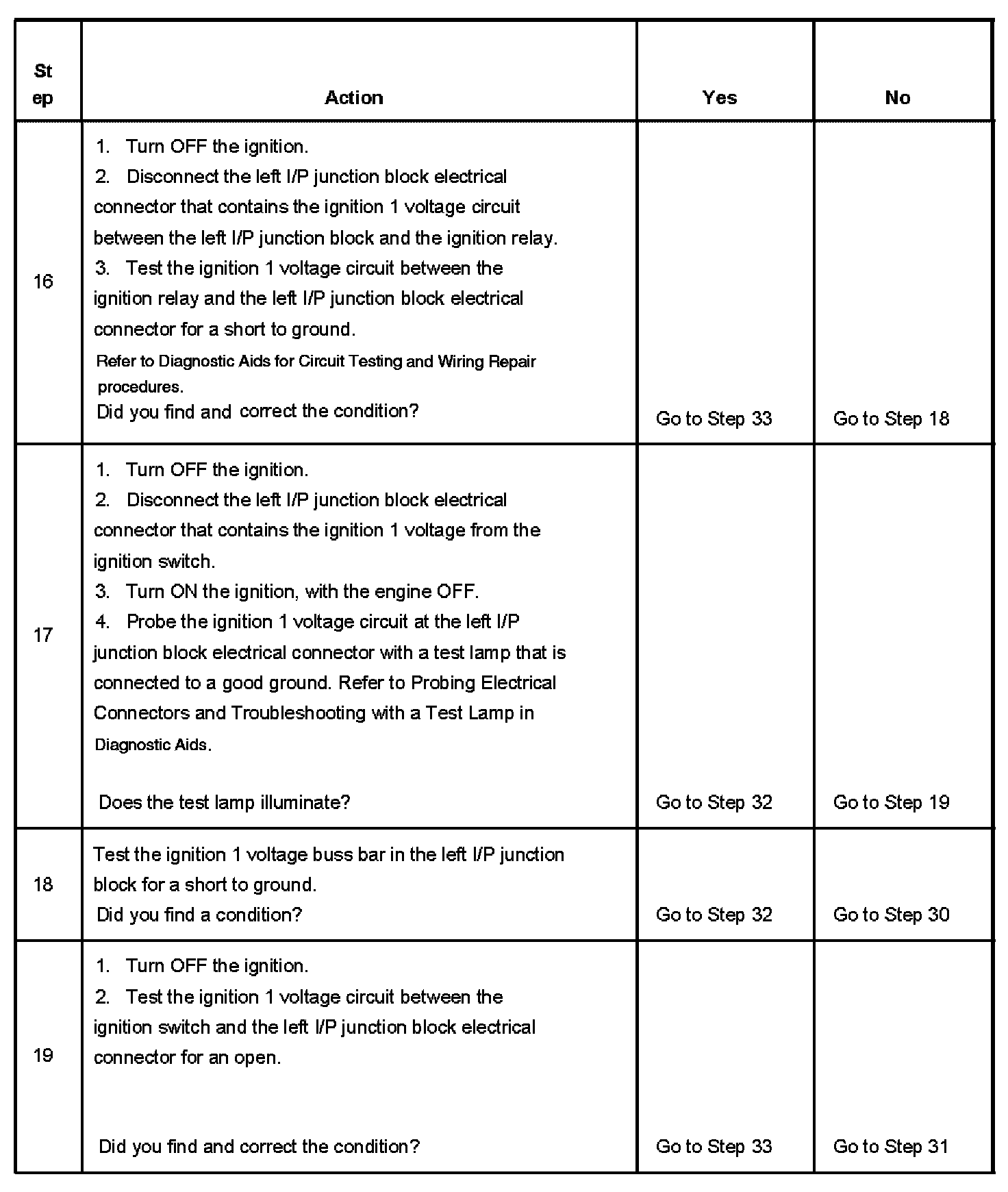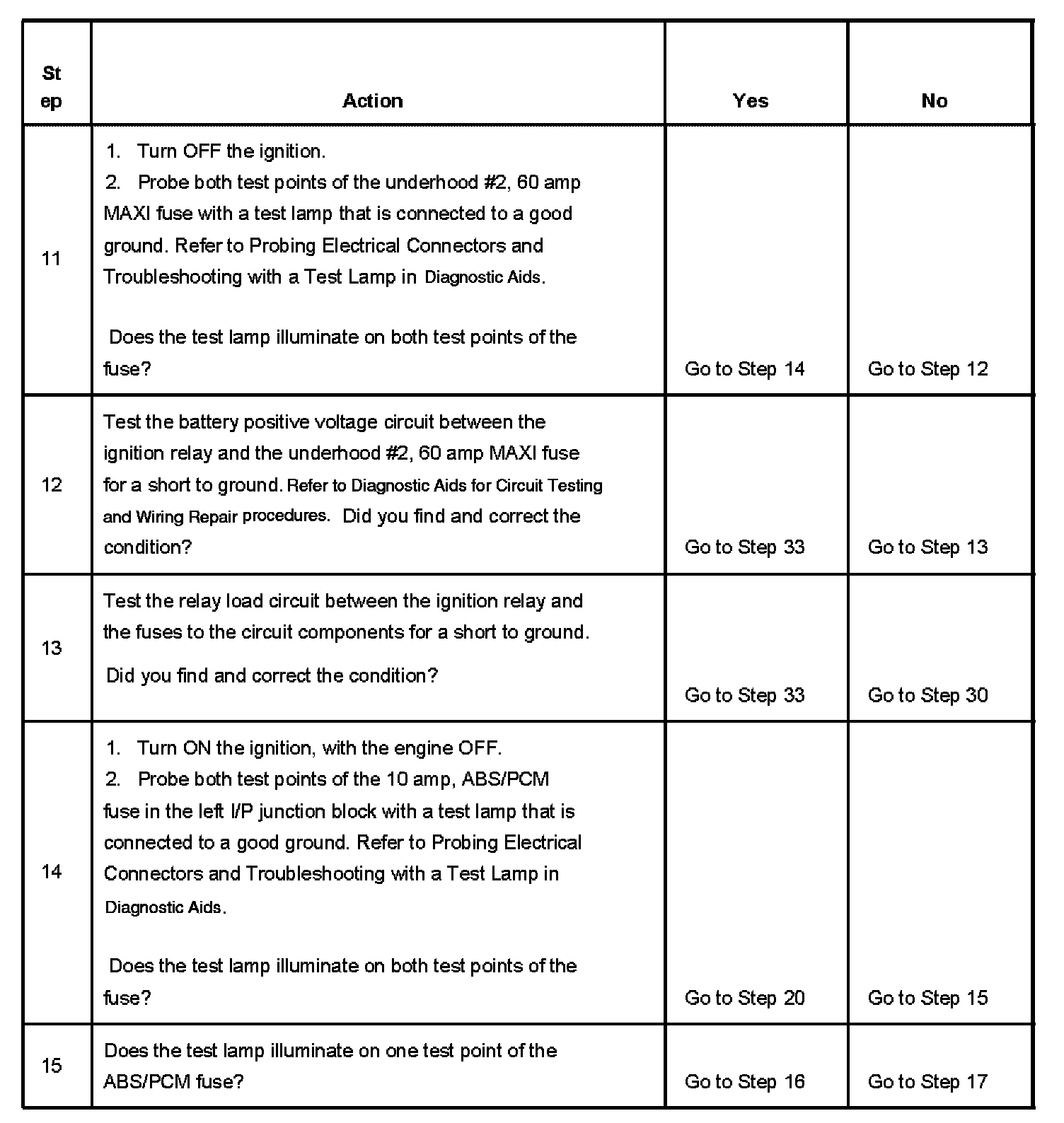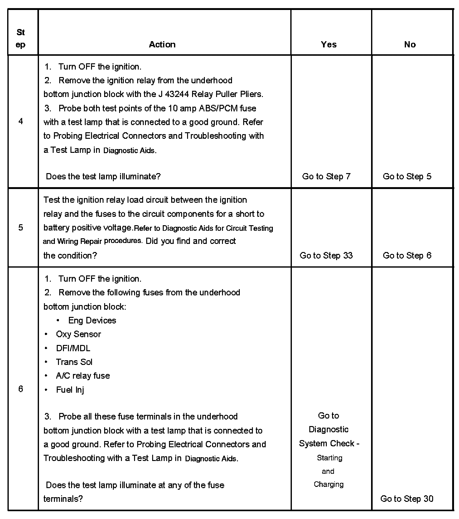 The ignition relay table assumes that the vehicle battery is fully charged.
