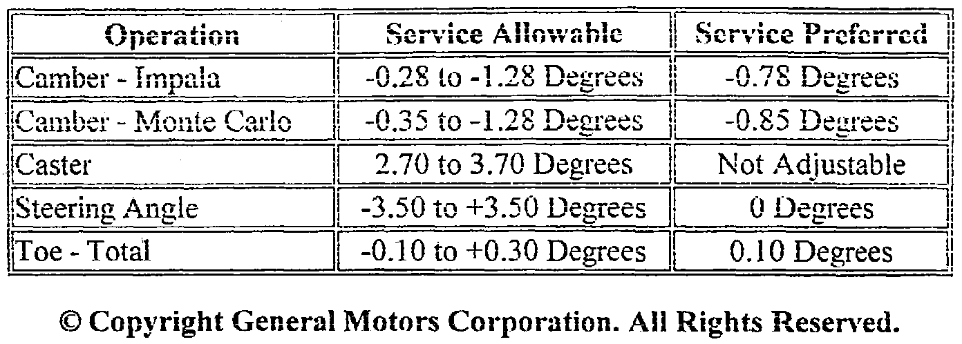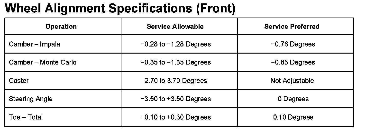 Front Wheel Alignment Specifications