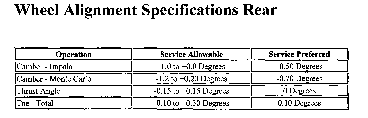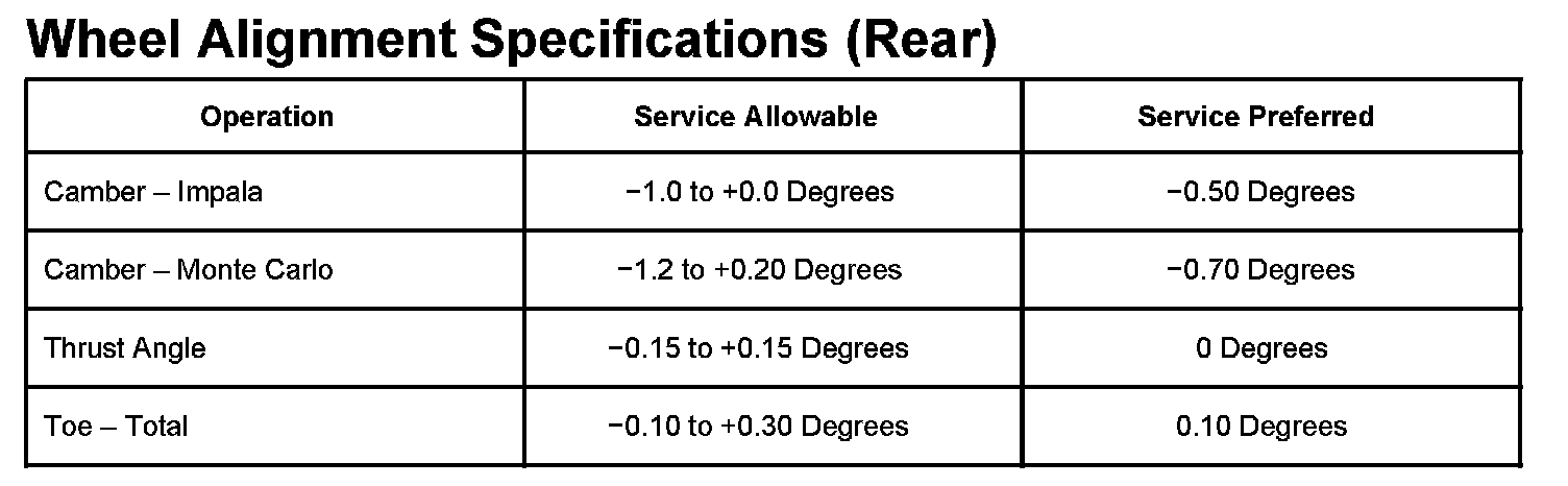 Rear Wheel Alignment Specifications