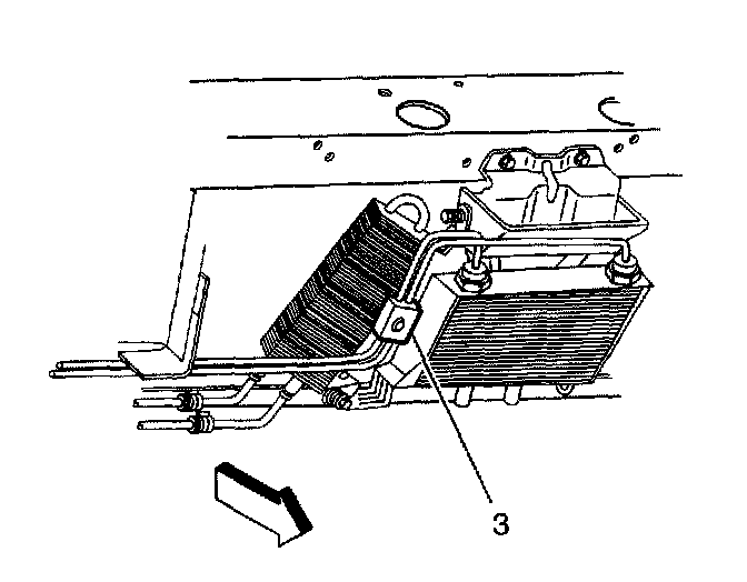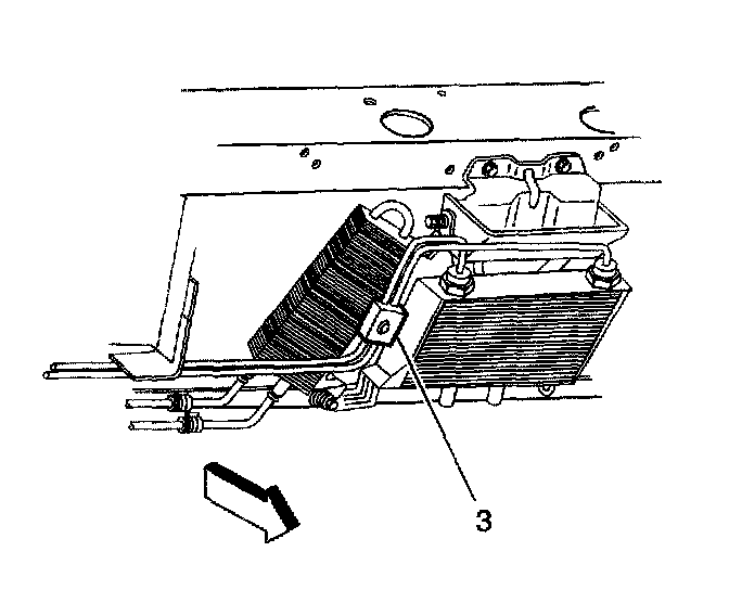 8. Remove the engine oil cooler line block connector (3) from the engine oil cooler lines.