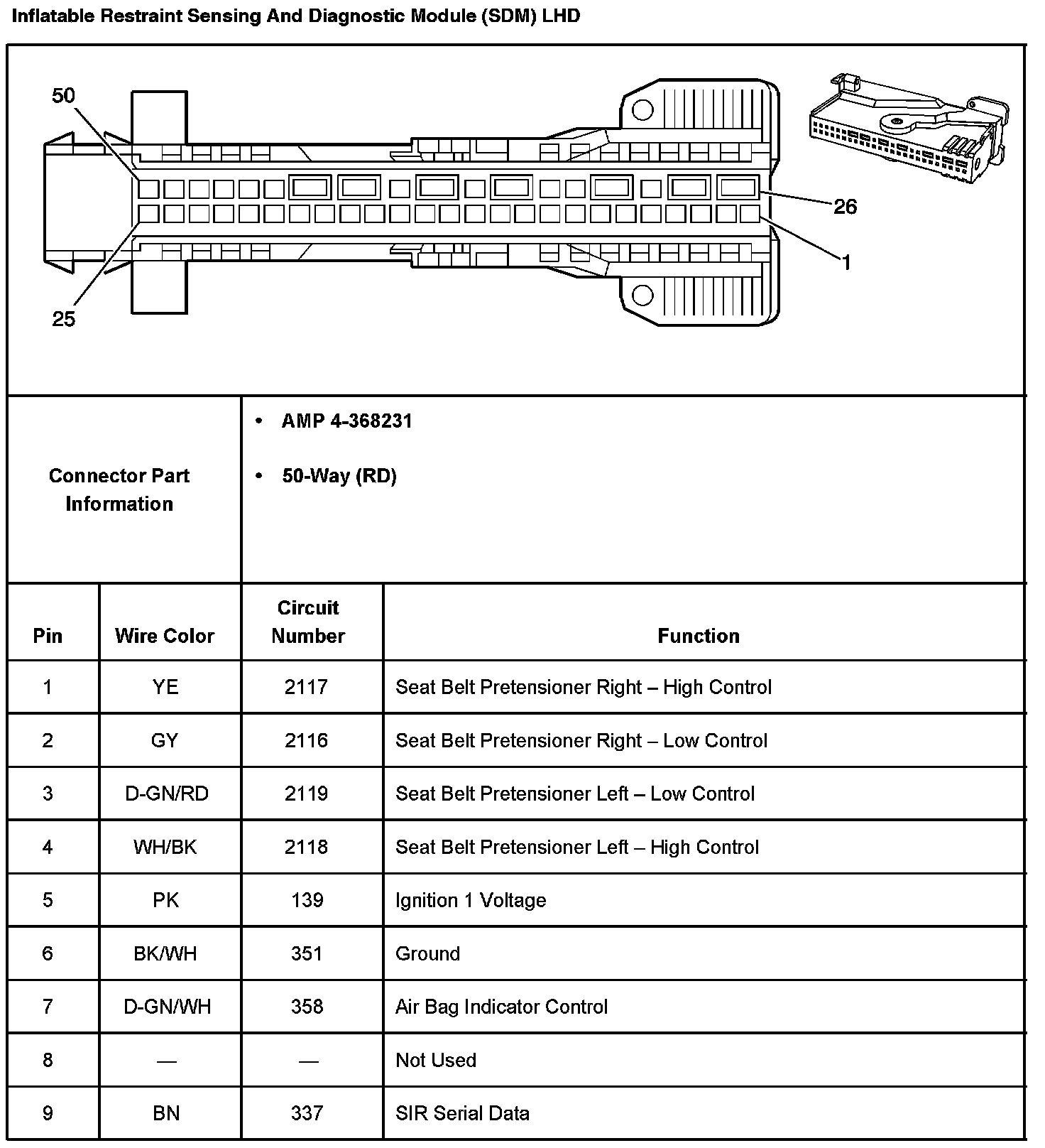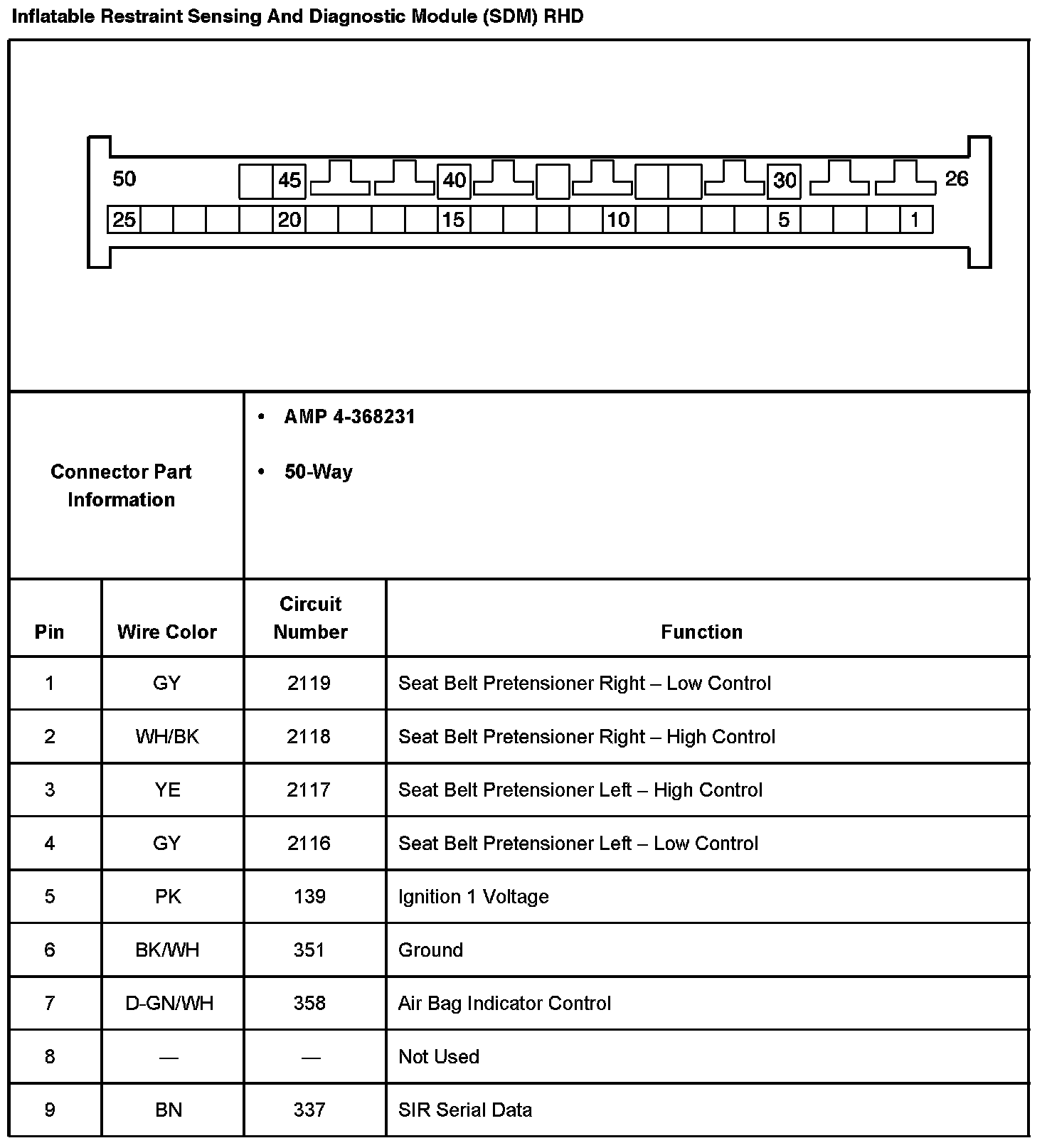 Inflatable Restraint Sensing And Diagnostic Module (SDM) RHD Part 2: