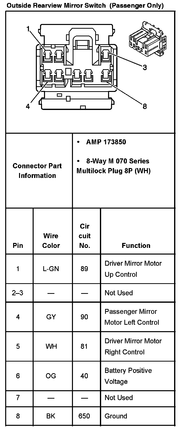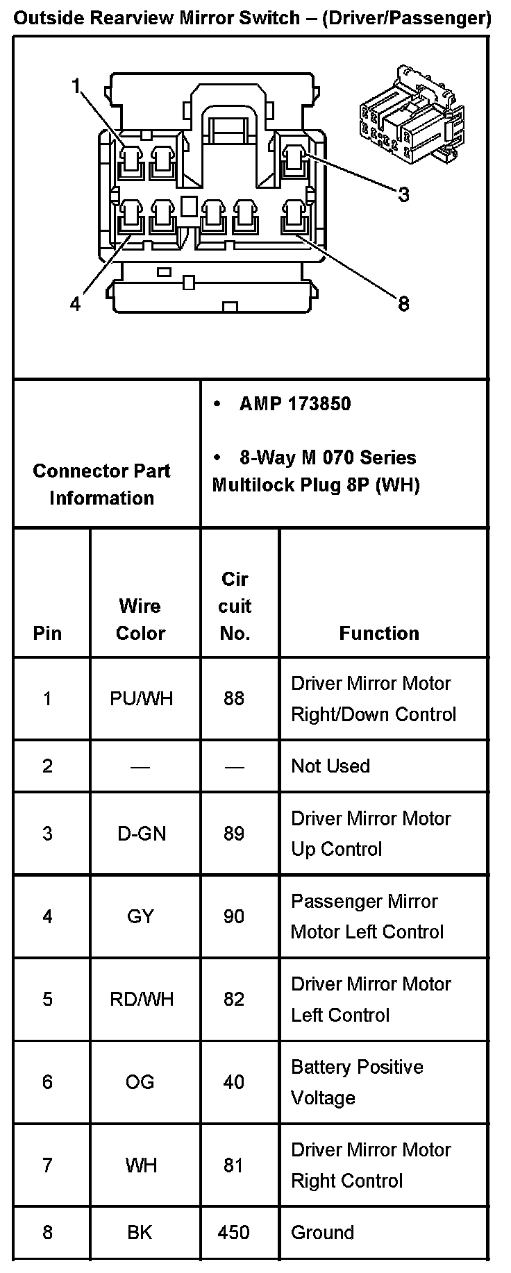 Outside Rearview Mirror Switch - (Driver/Passenger):