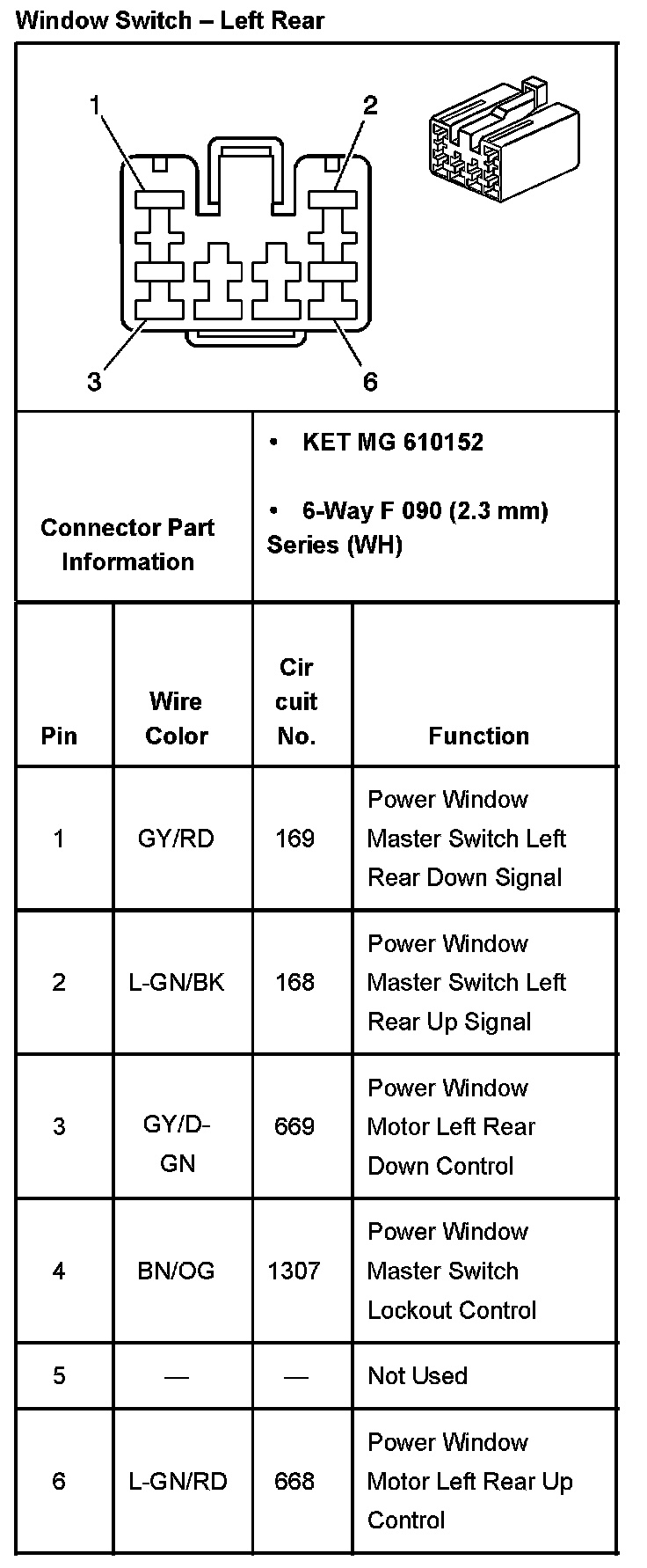Window Switch - Left Rear: