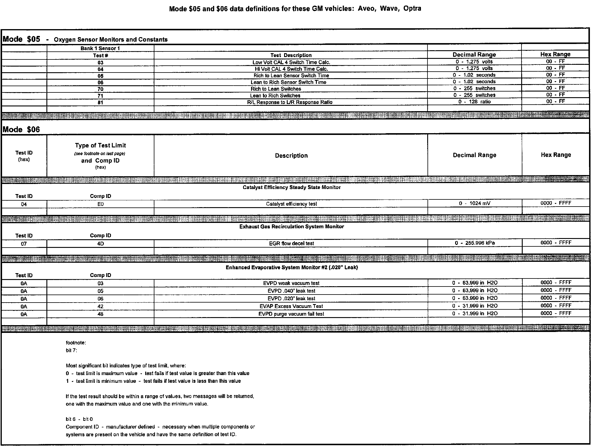 GM Aveo,Wave And Optra Mode 6 Data Description: