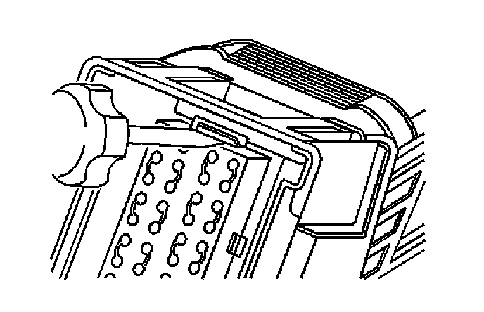 3. Locate the 2-wire dress cover locking tabs that are opposite the wire end of the connector. Use a small flat-bladed tool to unlock the dress cover.