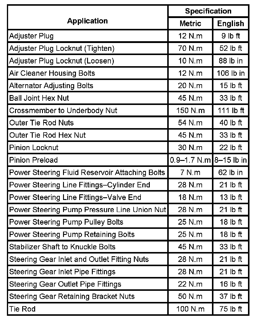 Fastener Tightening Specifications: