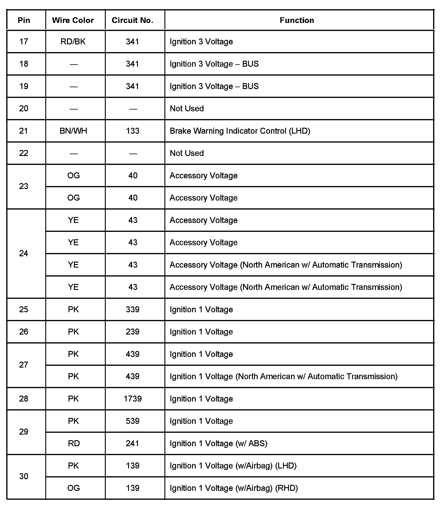 Instrument Panel Fuse Block, Wire Entry View
