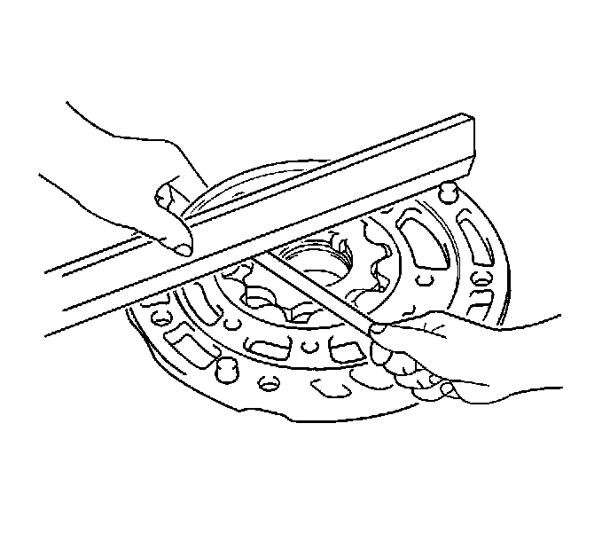 Using a steel straight edge and feeler gage, measure the side clearance of both gears.