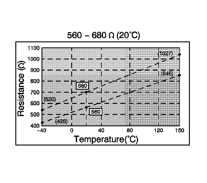 2. If the resistance value is not between the minimum and maximum resistance plot lines, then measure the sensor resistance at 20°C (68°F).