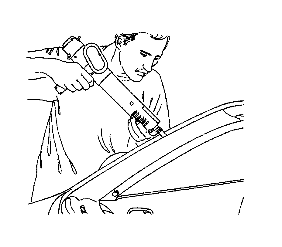 4. Using the glass sealant remover J 24402-A , cut the adhesive around the windshield.