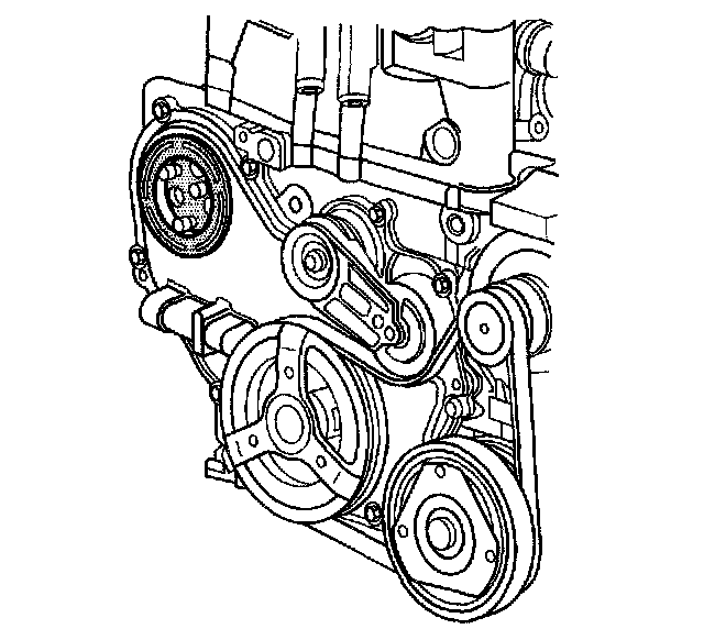 7. Install J 43651 to the water pump sprocket.