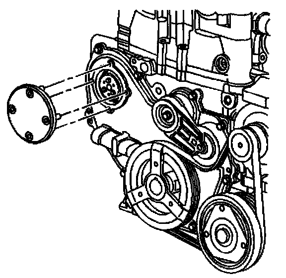 6. Install 2 of the bolts that secure the water pump sprocket to the water pump.