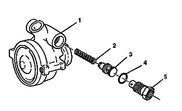 1. Remove the O-ring union fitting (5) from the hydraulic pump housing assembly (1).