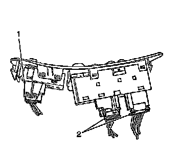 1. With a flat-bladed tool release the power accessory switch panel retainers (1).