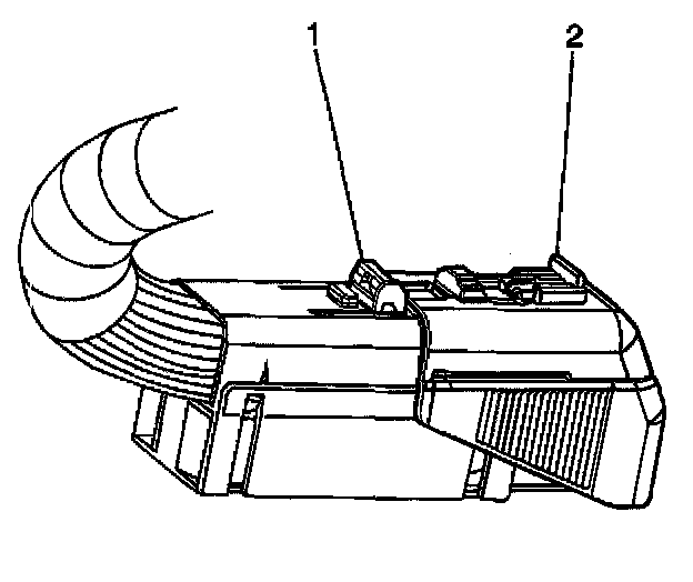 3. Remove the Connector Position Assurance (CPA) (2) from the connector lock tab (1).