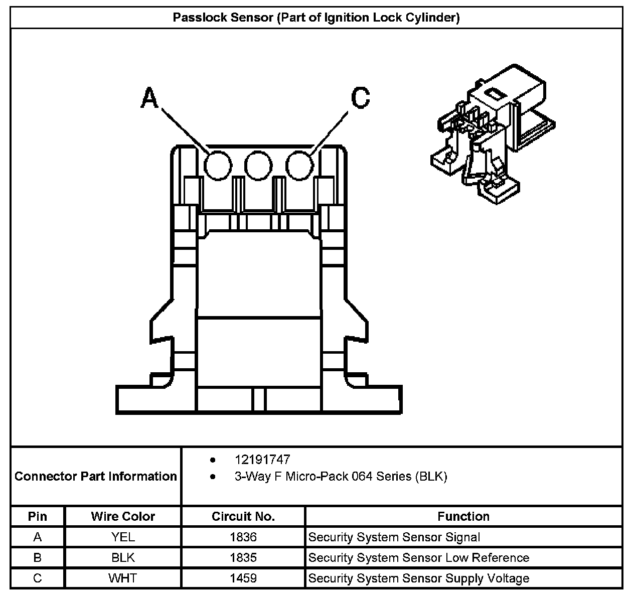 Passlock Sensor (Part Of Ignition Lock Cylinder):
