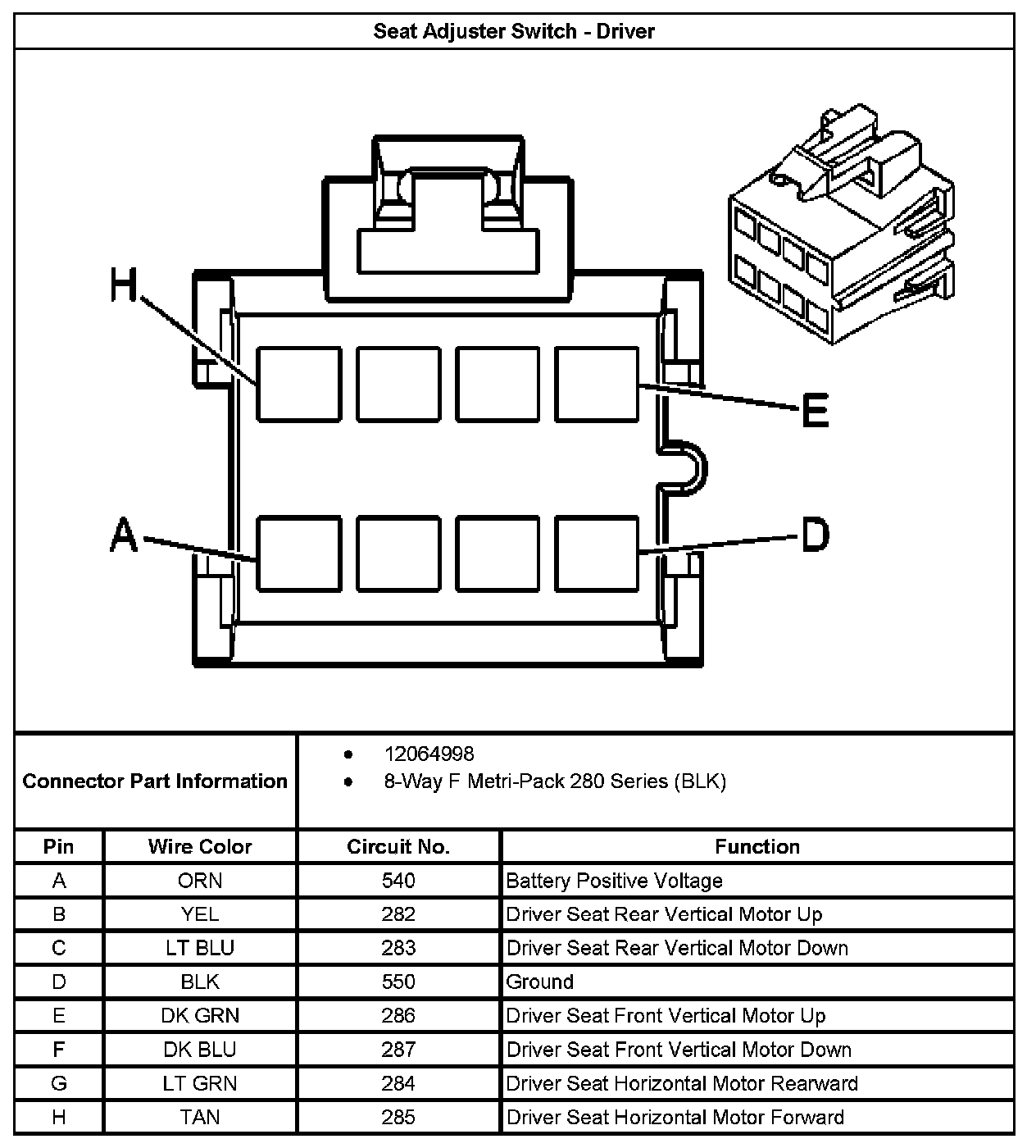 Seat Adjuster Switch - Driver: