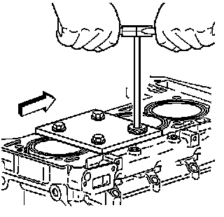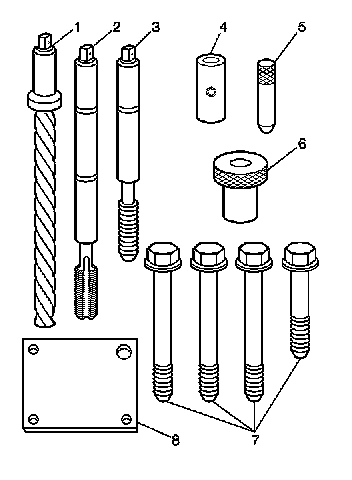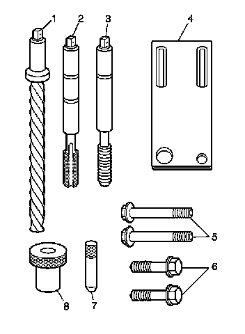 3. Install the fixture plate, bolt, and bushing, onto the engine block.Position the fixture plate and bushing over the hole that is to be repaired.