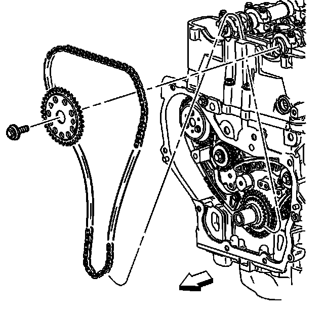 17. Remove the intake camshaft sprocket bolt and discard.