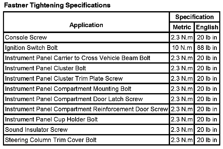 Instrument Panel, Gauges and Warning Indicators: Specifications