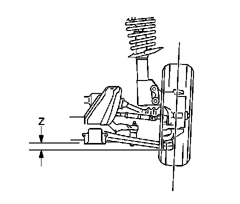 The Z height dimension measurement determines the proper ride height for the front end of the vehicle. There is no adjustment procedure. Repair may require replacement of suspension components.