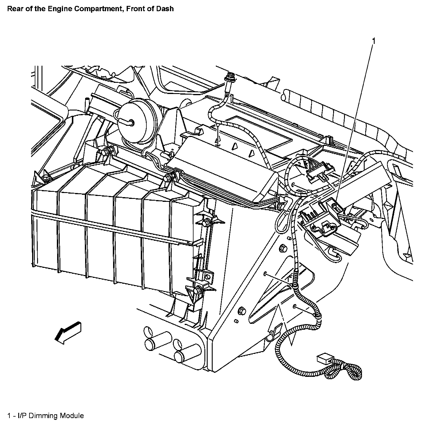Rear of the Engine Compartment, Front of Dash: