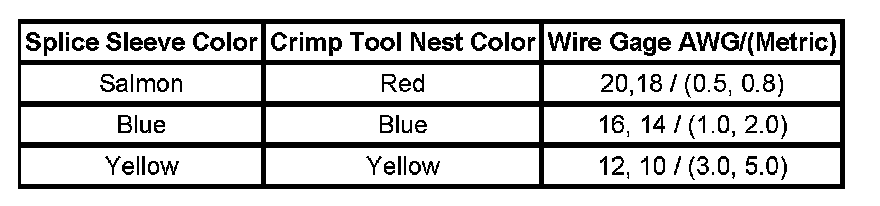 5. Select the proper splice sleeve (2) and the required crimp nest tool, refer to the Crimp and Seal Splice Table.