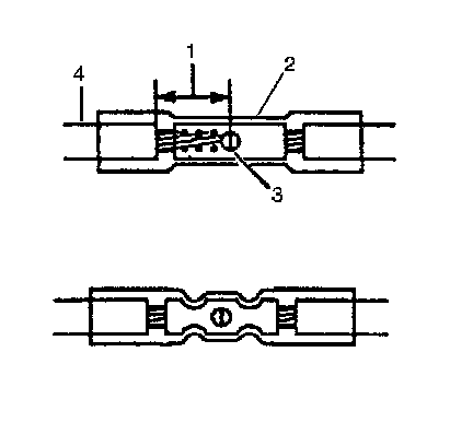 - Strip approximately 7.5 mm (5/16 in) of insulation from each wire to be spliced (1).