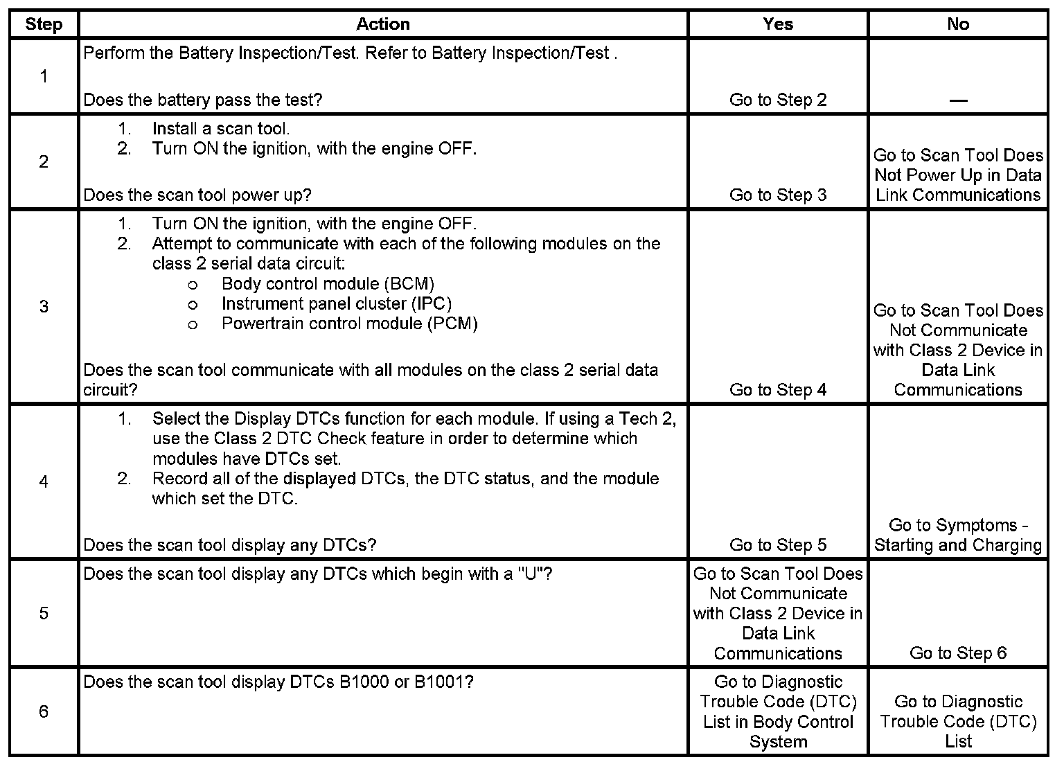 3. Lack of communication may be because of a partial malfunction of the class 2 serial data circuit or due to a total malfunction of the class 2 serial data circuit. The specified procedure will determine the particular condition.