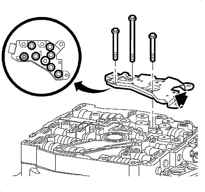 13. Install the transaxle case side cover. Refer to Control Valve Body Cover Replacement .