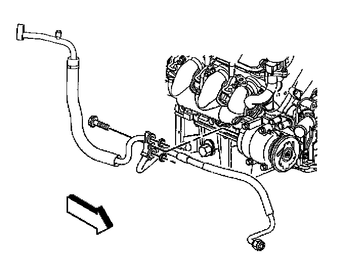 7. Remove the compressor hose assembly retaining bolt.