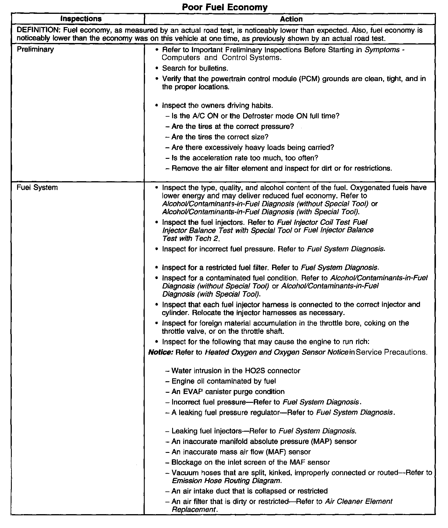 Poor Fuel Economy