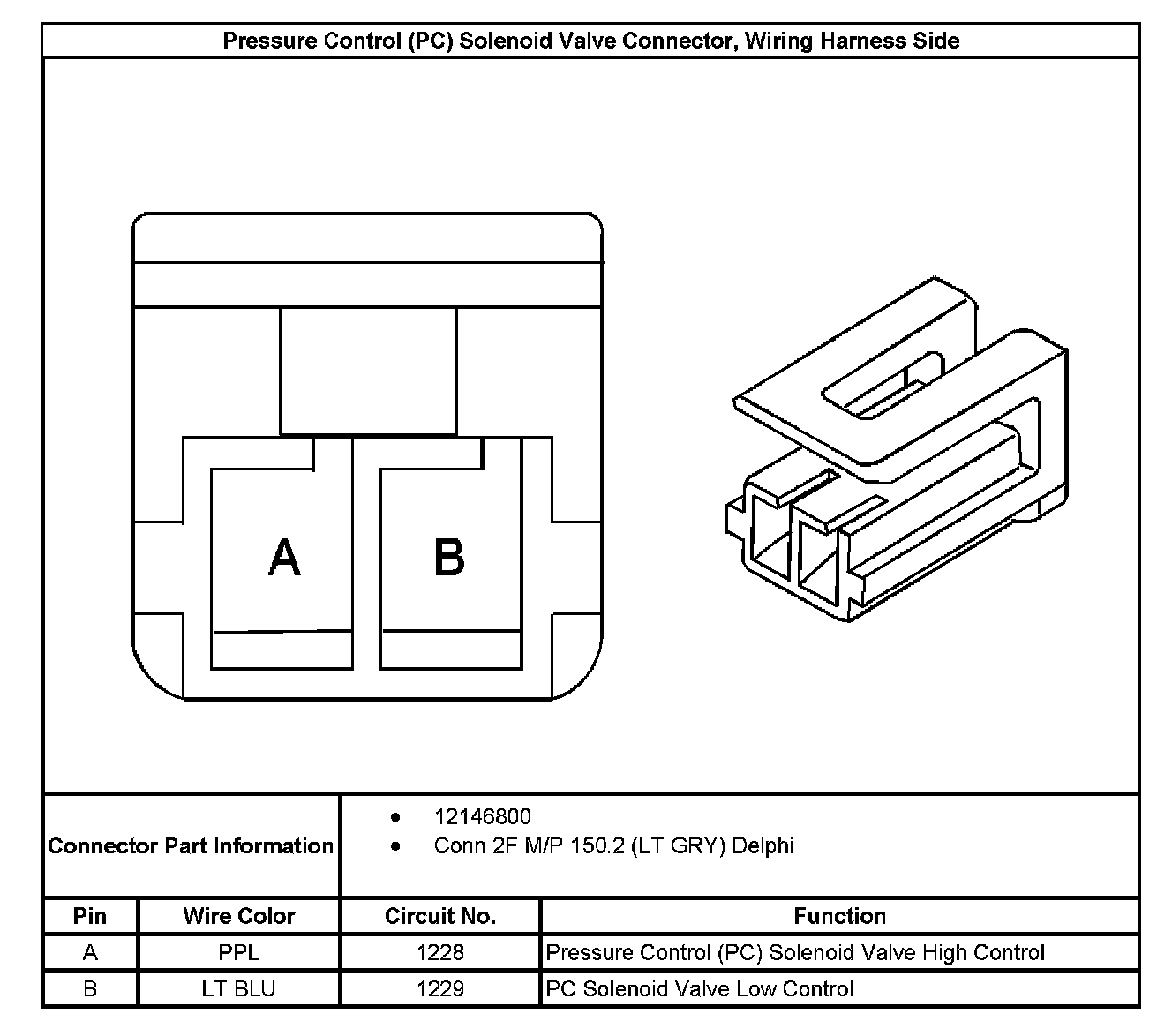 Pressure Control (PC) Solenoid Valve Connector, Wiring Harness Side