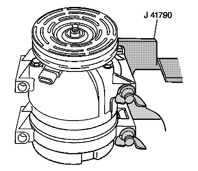 2. Clamp the A/C compressor holding fixture, J 41790 in a vise and attach the A/C compressor to the J 41790.