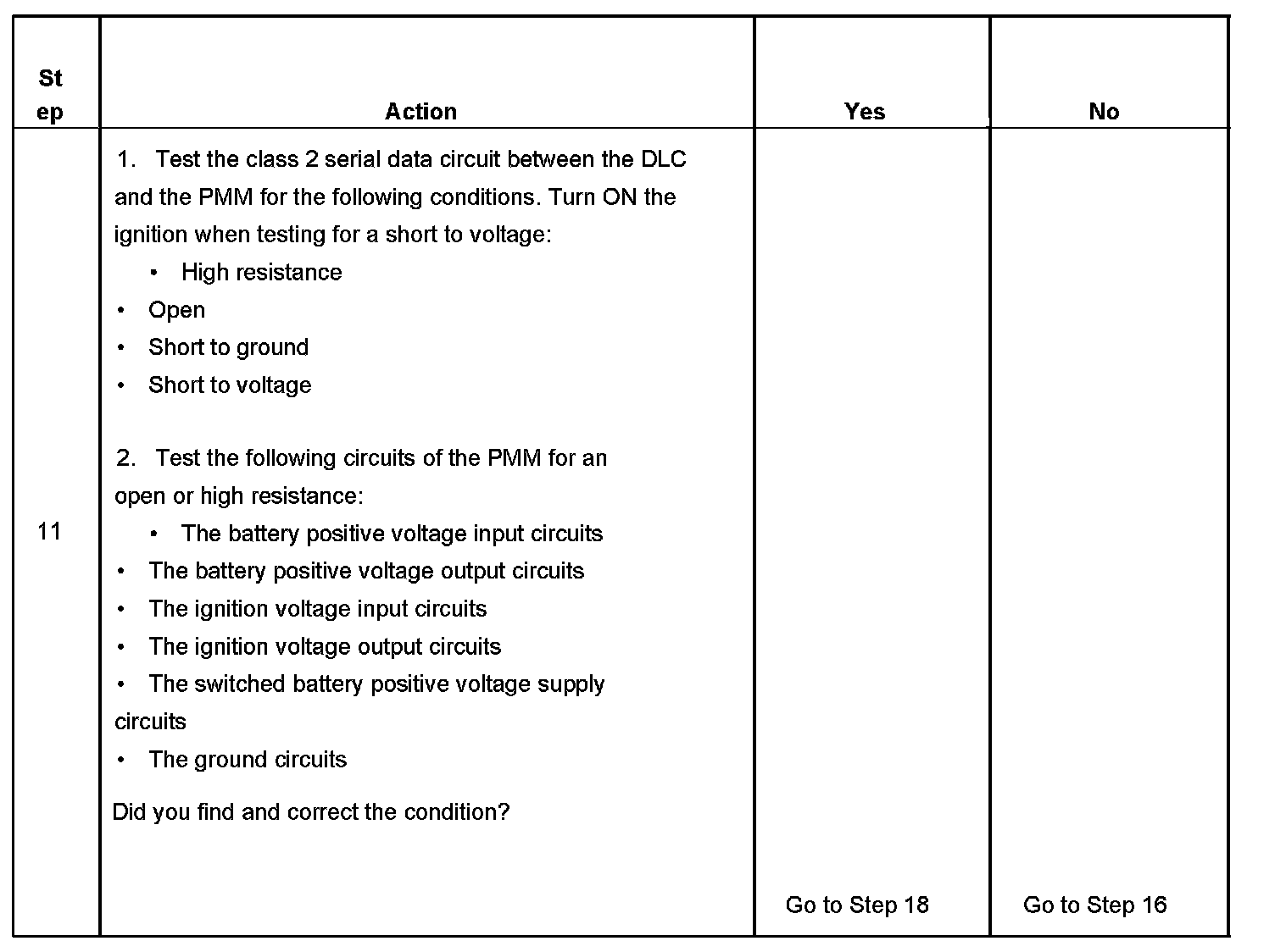 12. Normal class 2 serial data communication cannot take place until the power mode master (PMM) module sends the appropriate power mode message. If the PMM does not send a wake-up message, other modules on the class 2 serial data circuit may not communicate.