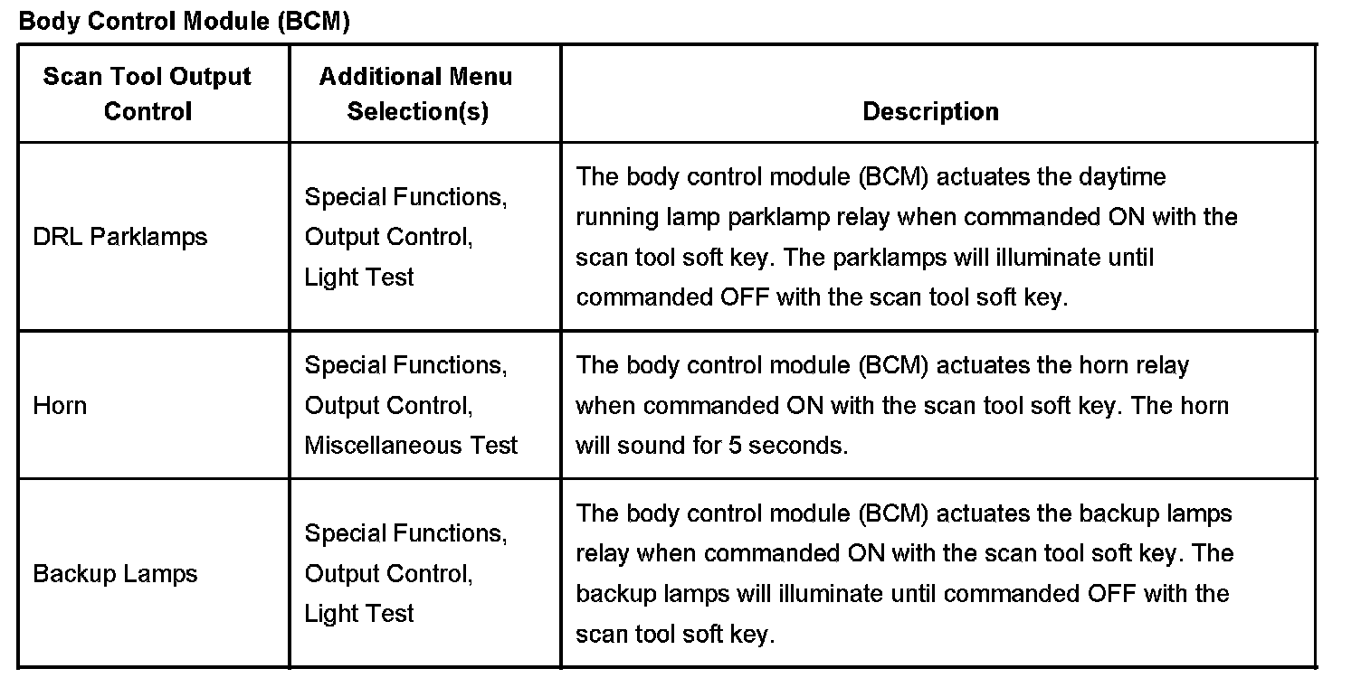 Scan Tool Output Controls