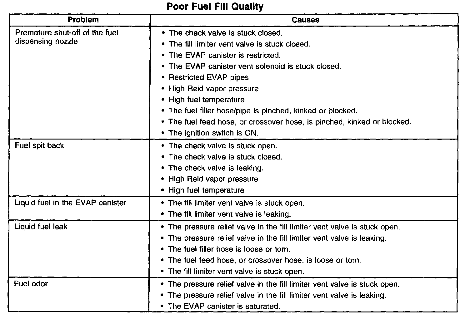 Poor Fuel Fill Quality