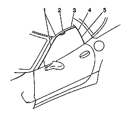 14. Perform minor height and minor tip-in adjustments as necessary. Refer to Window Tip-In Adjustment - Door and Window Height Adjustment - Door Minor.
