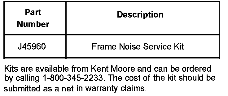 This bulletin is being revised to add the 2005 model year. Please discard Corporate Bulletin Number 02-08-61-001A (Section 08 - Body and Accessories). While continuous improvements to the frame/cradle assembly have been implemented to minimize noise, in certain circumstances a noise may be evident to the customer. The procedure in this bulletin can be used on all model year vehicles to correct the noise.