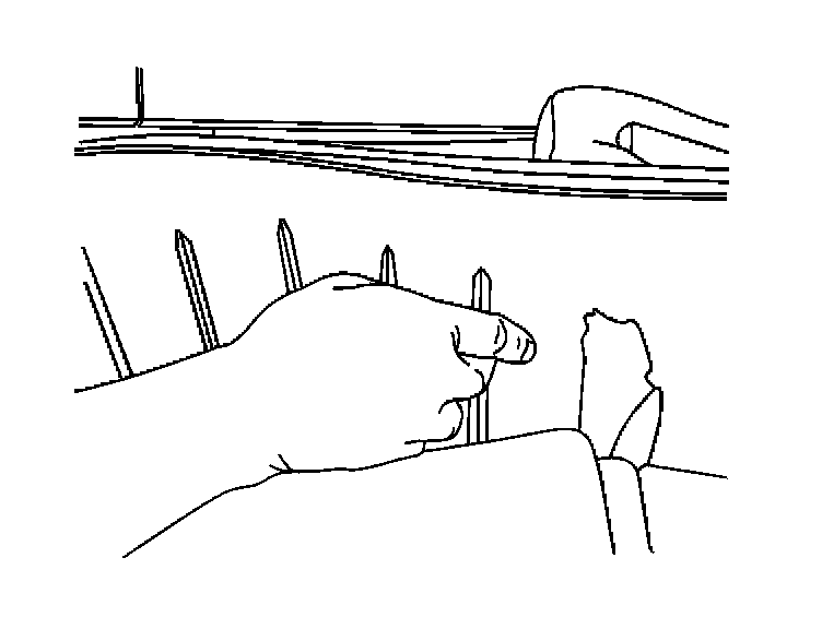 6. Install the seat back cover to the retainer at the side impact airbag, by pressing in and pulling down on the seat back cover.
